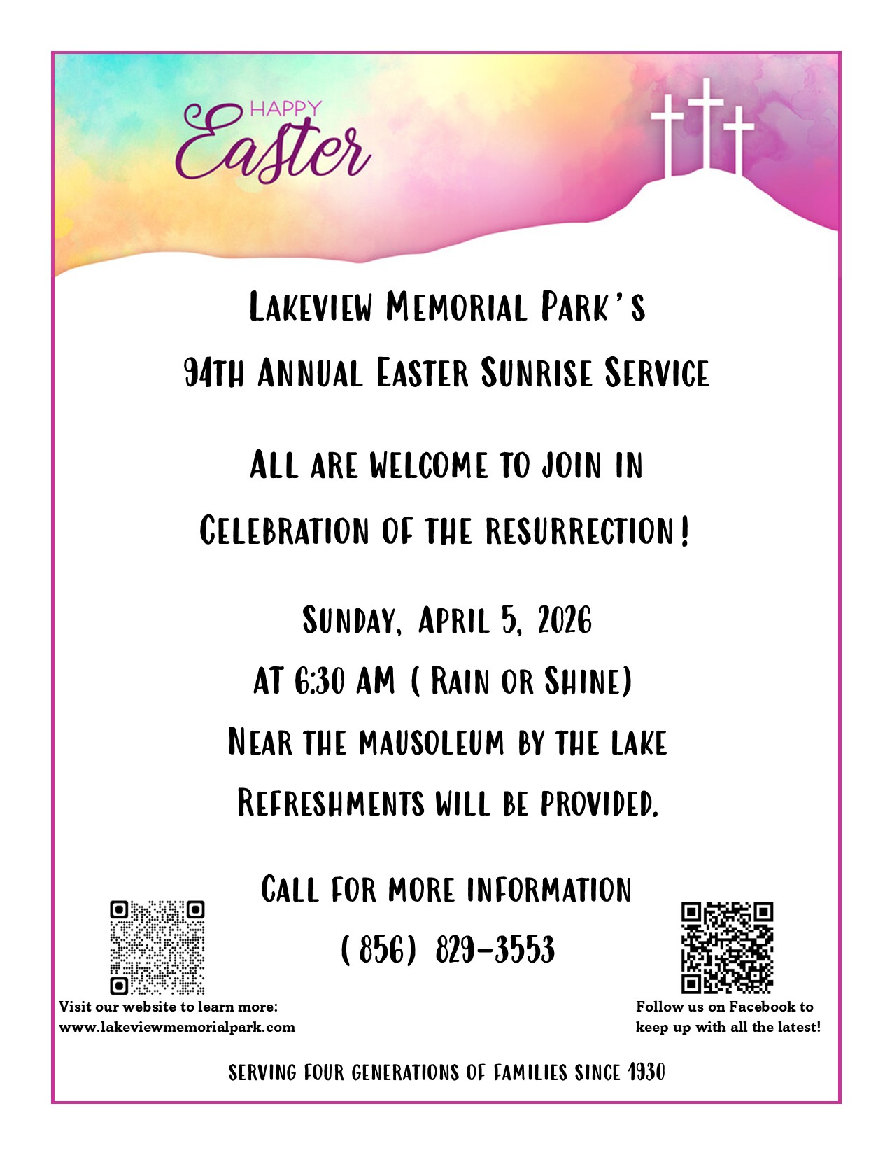 The Trustees have monies available for repurchases of interment spaces. Should you or any relatives have in-ground graves that you are not planning to use, please contact our office staff. Phone 856-829-3553